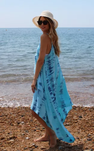 BLUE TIE DYE STRAPPY ASYMMETRICAL DRESS