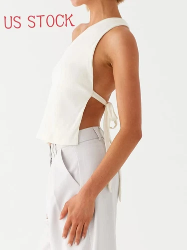 Elegant One Shoulder Blouse Women s Fashionable Sleeveless Top with Chic Side
