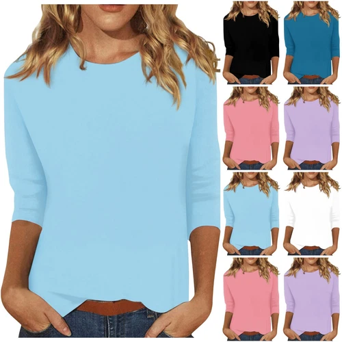 New Women's Fashion Casual Three Quarter Sleeve T-Shirt Solid O-Neck TopsNew Women’s Fashion Casual Three Quarter Sleeve T-Shirt Solid O-Neck Tops